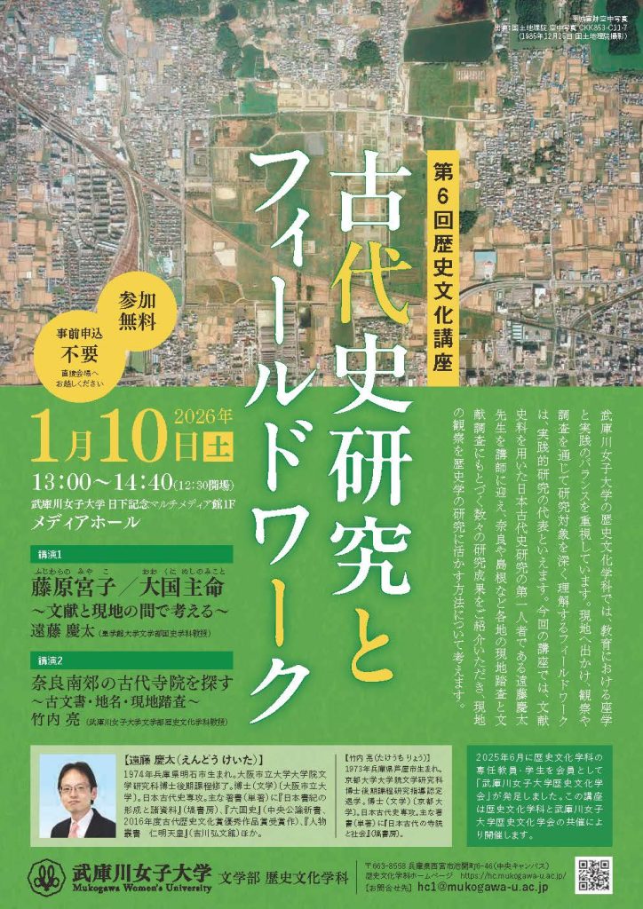 歴史文化学科と武庫川女子大学歴史文化学会の共催で「第6回歴史文化講座」を開催します。