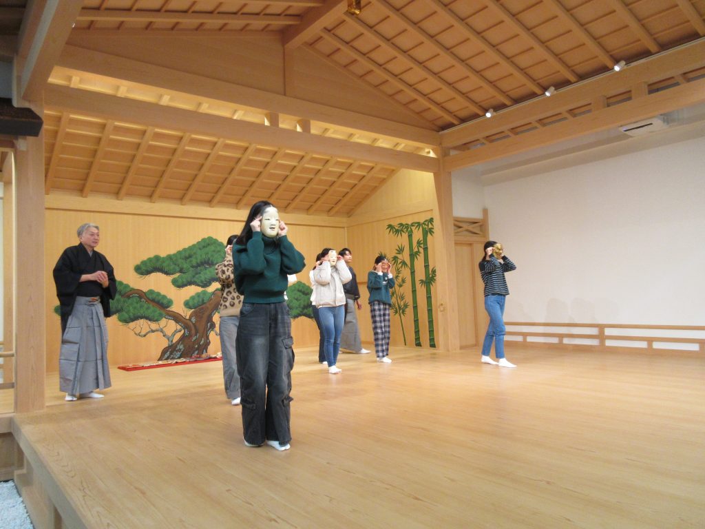 1回目は、能についての説明を受けた後に、能面・すり足体験、謡体験をしました。